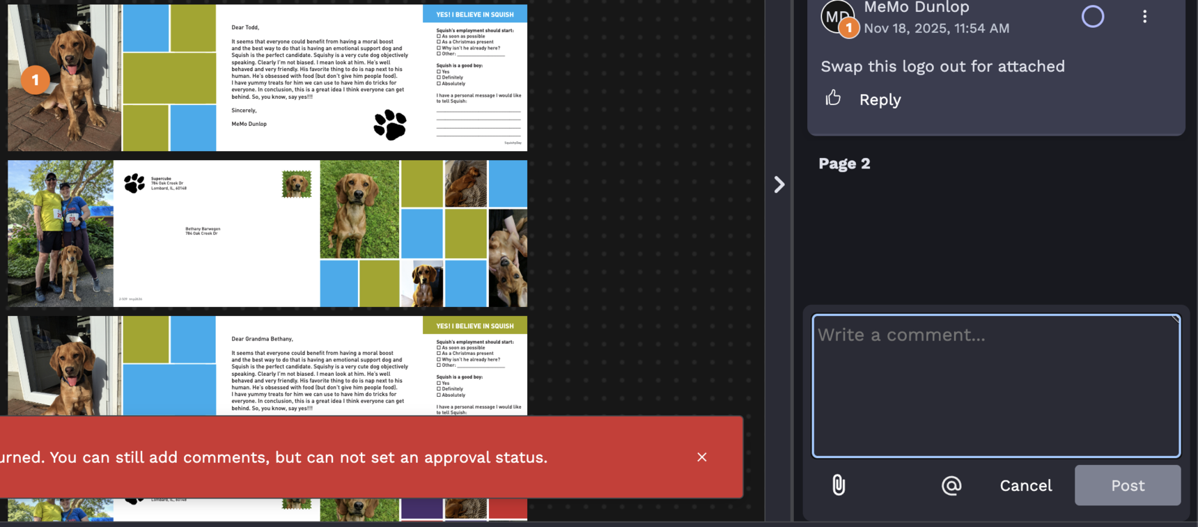 Approved As Is: There are no changes to be made on this page. If all pages have this status, your PC will move your project into production. You should only select Approved As Is on all pages if Pledgemine has your final data set. If you have not reviewed a merged live proof, then we cannot send it through to production, and the proof will not be considered approved. Instead, we will reach out asking for data from you. Once received, you will get a new review that includes the data merging in for approval.