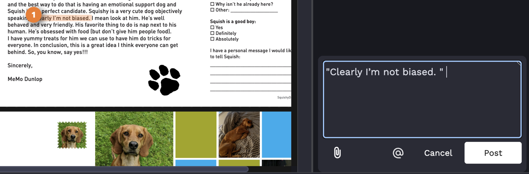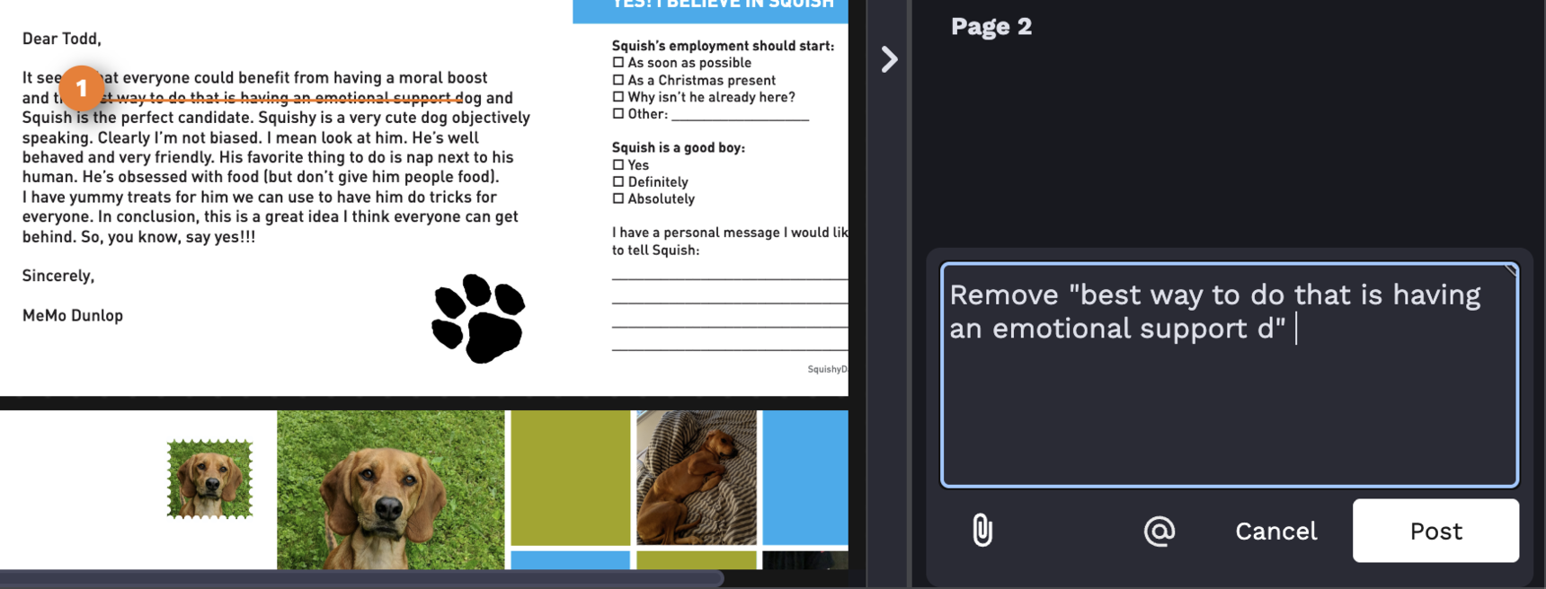 This tool allows you to highlight text to indicate a change is needed. A comment will be created for you to indicate what change is needed.