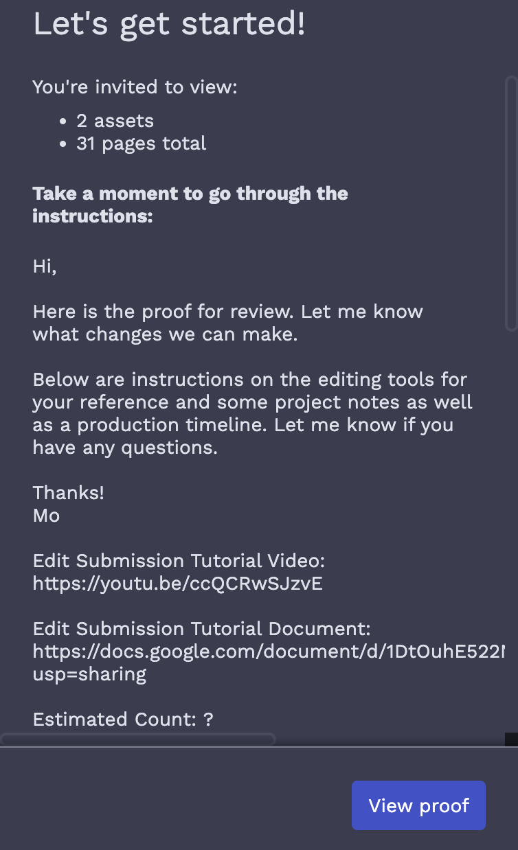Within the email, click on the Start Your Review Button to view & indicate changes to your proof.