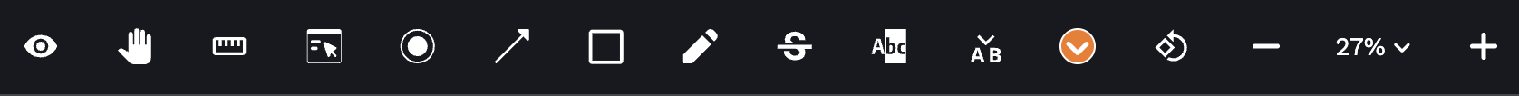 Below is the toolbar available within every proof you will receive in Lytho and a breakdown of what each tool does. Most tools have a comment created in conjunction with the location you've marked up. If a new file is needed for the edit requested, you MUST attach the needed files directly to comments within the Lytho proof.