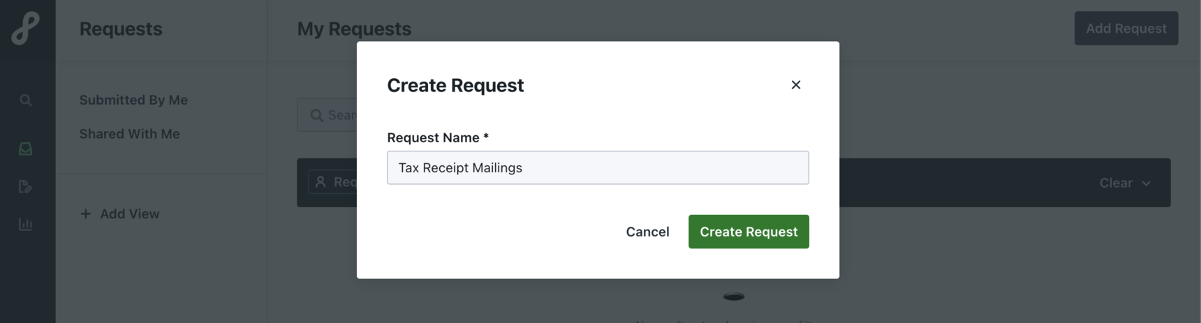 - Once you have all materials, click on ‘Add Request’ in order to start a new project.