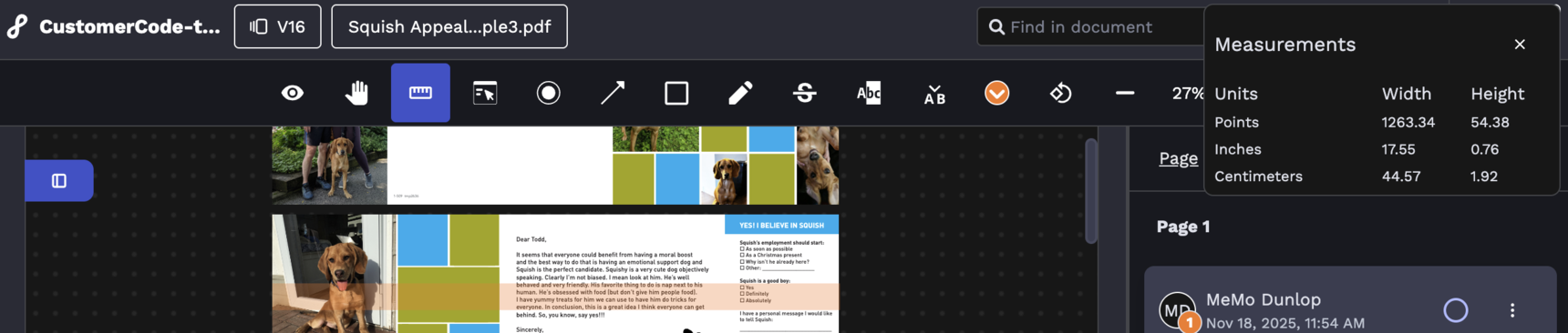 This tool will provide measurements for the pdf you're reviewing.