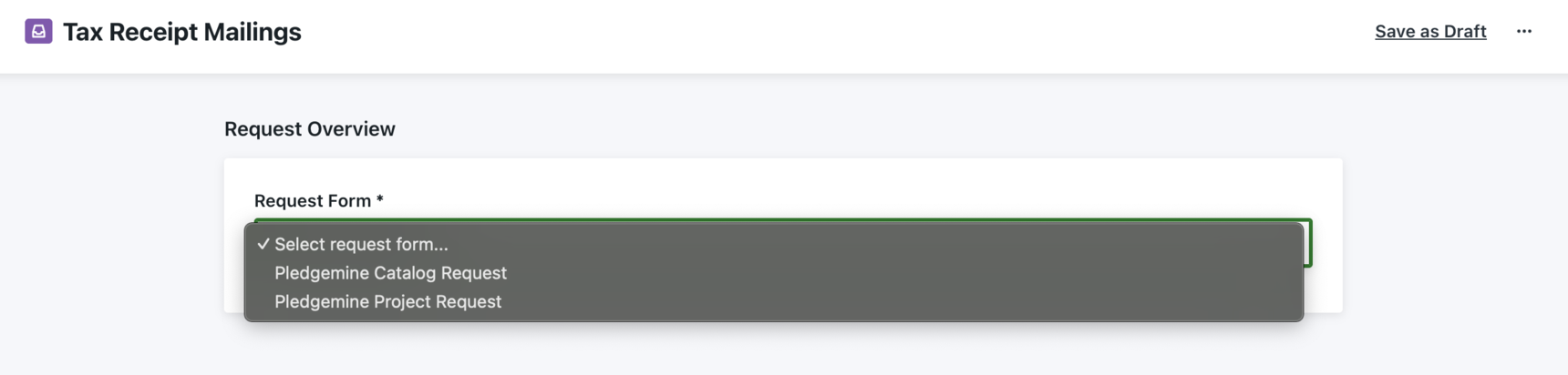- Select the correct project request form for your needs